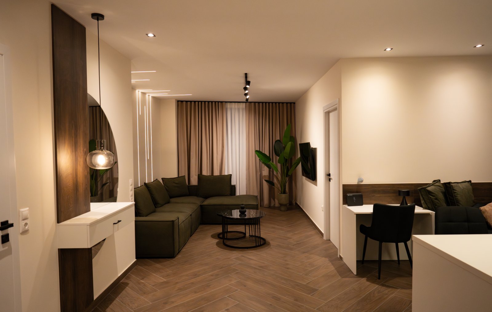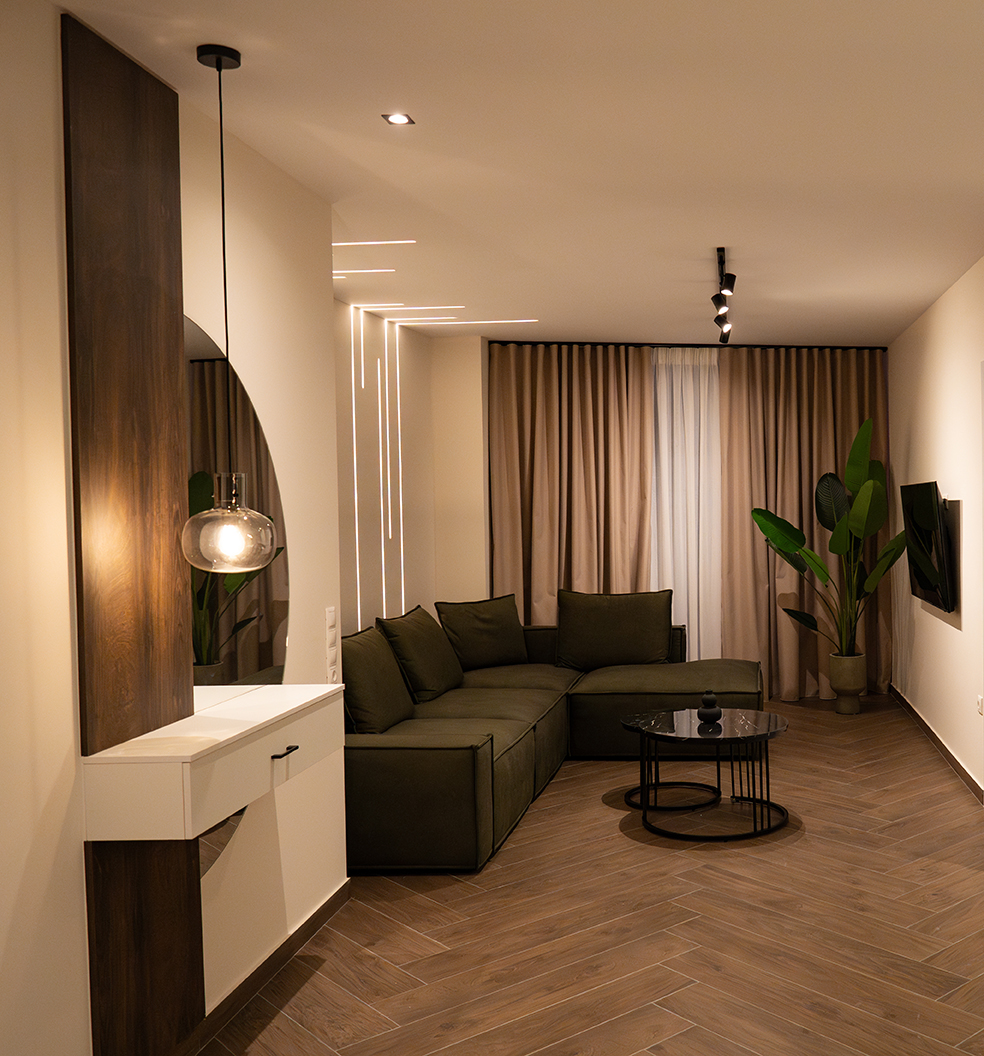 Σχεδιάσαμε ένα Airbnb με καθαρές γραμμές, LED φωτισμό και χαλαρωτική ατμόσφαιρα, ιδανικό για όσους αγαπούν τον μοντέρνο, ήσυχο και καλαίσθητο χώρο.